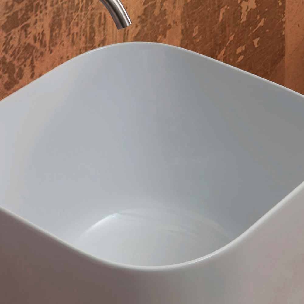 Lavoar de blat ceramic design modern Star Square 40x40 cm Esențialitate maximă. Star este o colecție caracterizată printr-un design revoluționar care îmbină proporțiile perfecte și formele pure. O colecție elegantă cu linii minimale și design esențial. Lavoarele au grosimi subtiri si pot fi montate deasupra. NB:Evacuare gratuită din ceramică inclusă, fără robinet. Opțional este posibil să aveți sifonul rotund din alamă cu finisaj cromat.