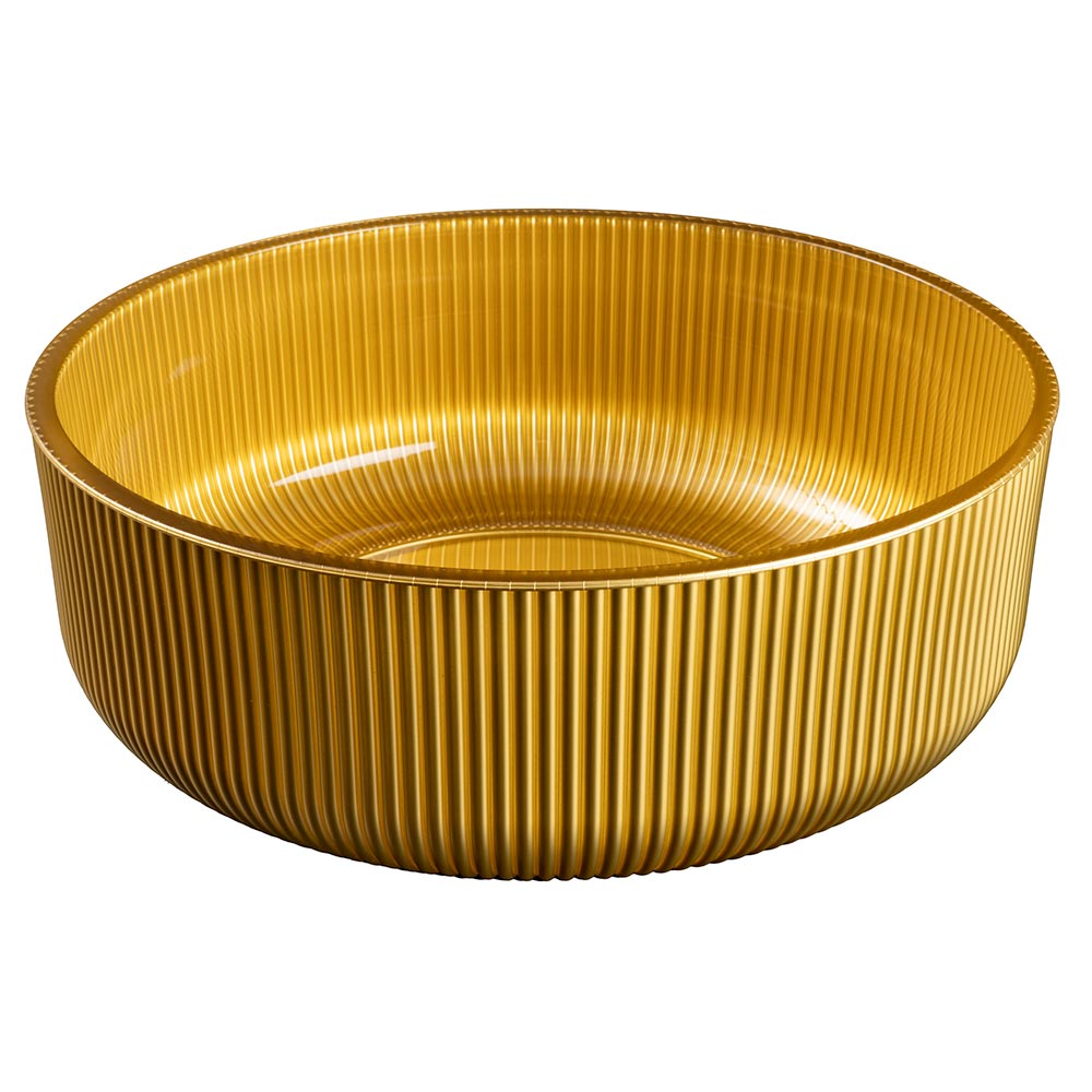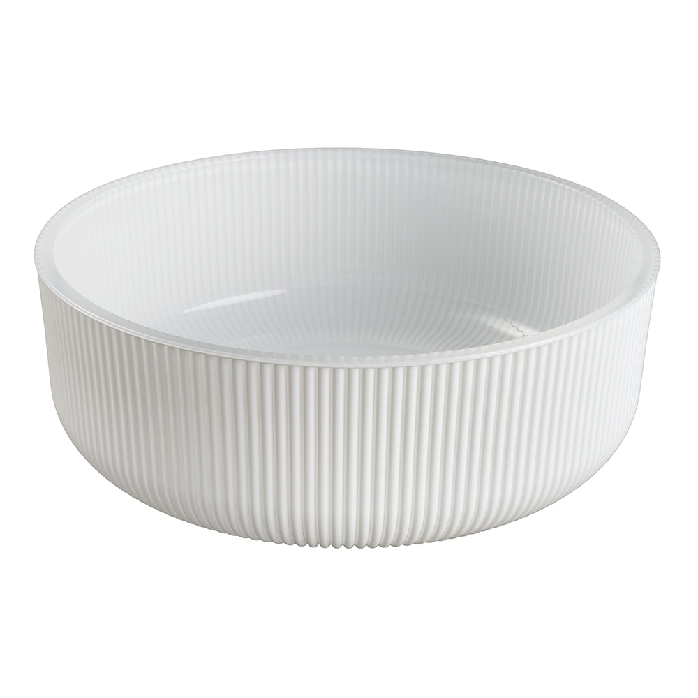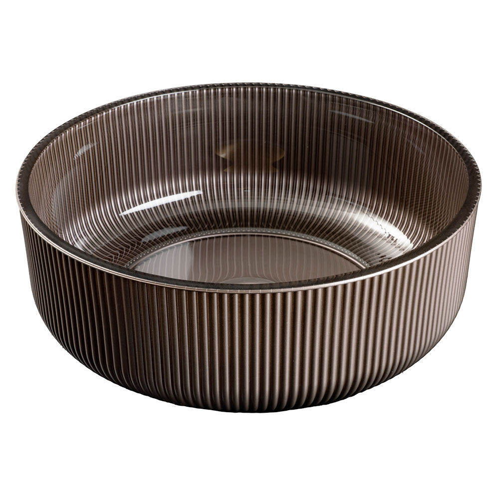 Un element de mobilier care devine protagonistul băii, această chiuvetă din sticlă venețiană combină măiestria artizanală cu rafinamentul estetic tipic Made in Italy . Fabricată din sticlă acoperită cu rășină și vopsită, cu finisaje fine, se remarcă prin suprafața sa exterioară, cu un model elegant în dungi , care creează jocuri unice de lumină și reflexii.