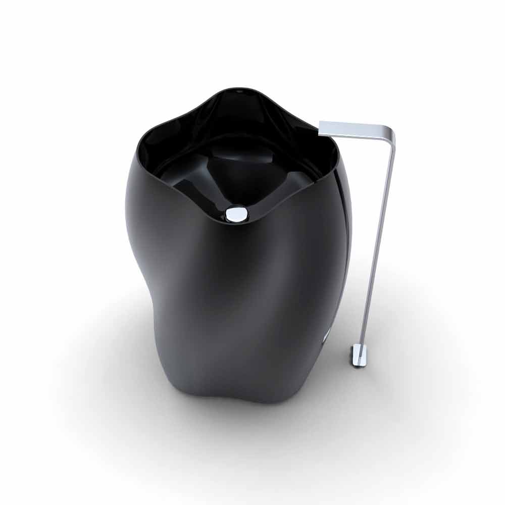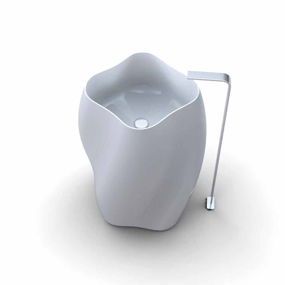 Lavoar de sine statator cu forme sinuoase si organice, in Solid Surface; Liniile sale arată un profil care amintește de silueta unei flori „exotice”. Pe lângă profilul lateral „ondulat”, are ca caracteristici o formă ușor „răsucită” pe sine, zveltă spre vârf pentru a arăta un bazin singular în formă de patrulater cu lobi. Acesta din urmă se prezintă ca un element suplimentar de caracterizare și o figură geometrică de bază, generând întreaga compoziție. Obiectele sanitare au si o ergonomie buna, fiind destul de rotunjite, disponibile in doua variante de culoare diferite: Alb (RAL9003) sau Negru (RAL9005).