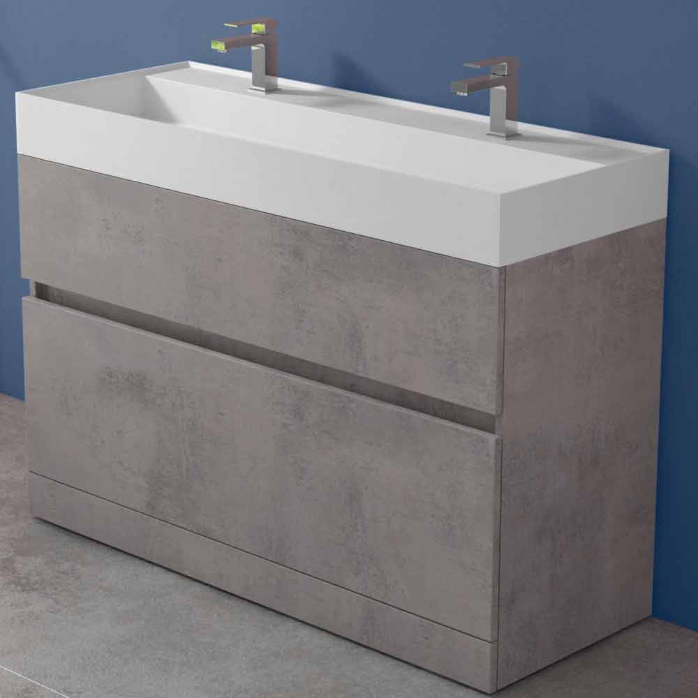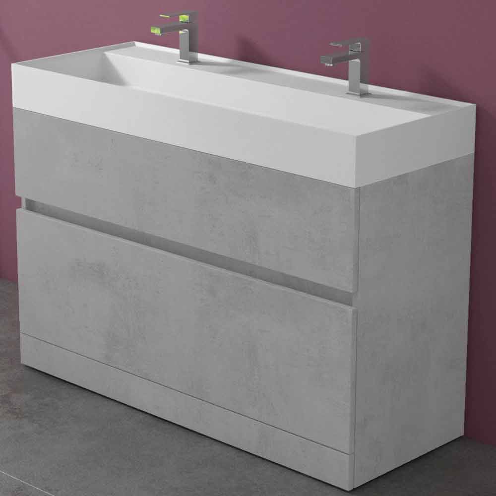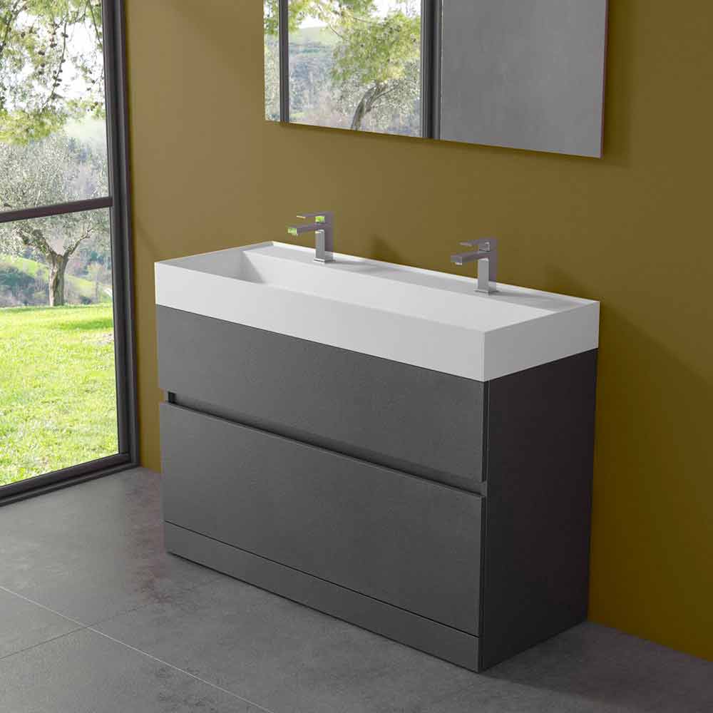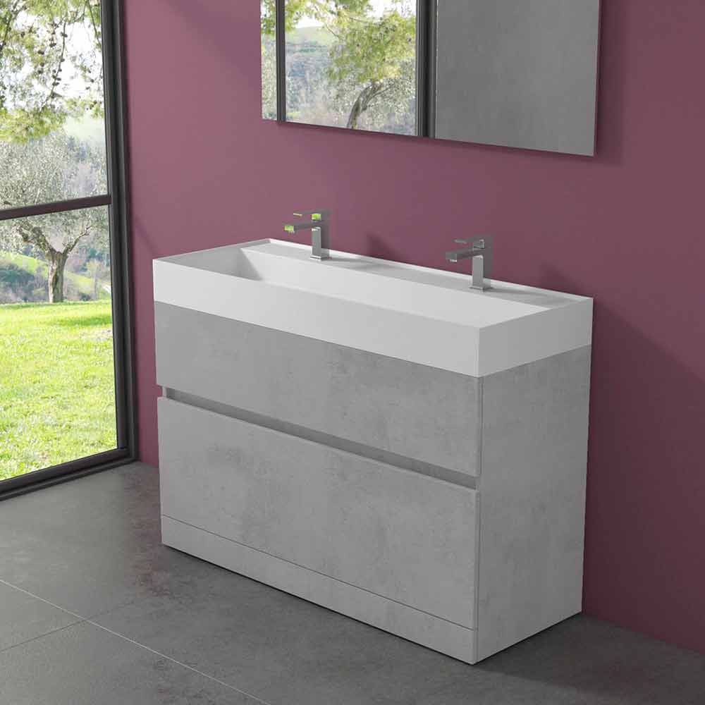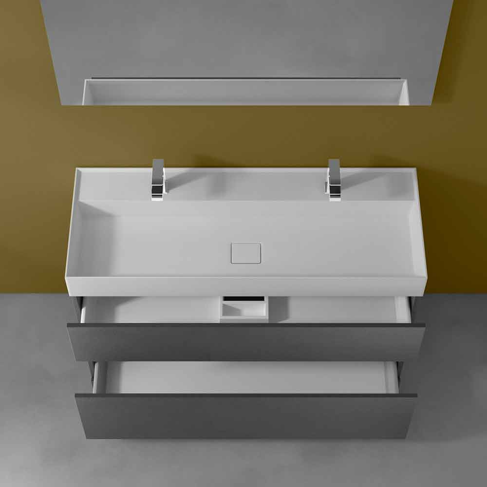 Dulap pentru baie cu chiuvetă dublă, design modern în laminat de diferite finisaje cu coș și sertar, fabricat în Italia.