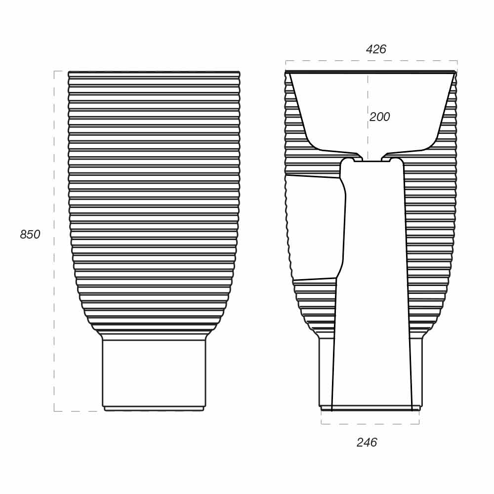 Materialul folosit este porțelanul vitros , care este un fel de ceramică glazurată , gătită la 1200 ° . Acest material este rezistent la acid , căldură , umflături și zgârieturi , este igienic și ușor de curățat și nu se estompează. Totul cu garanția unui produs complet realizat în Italia.