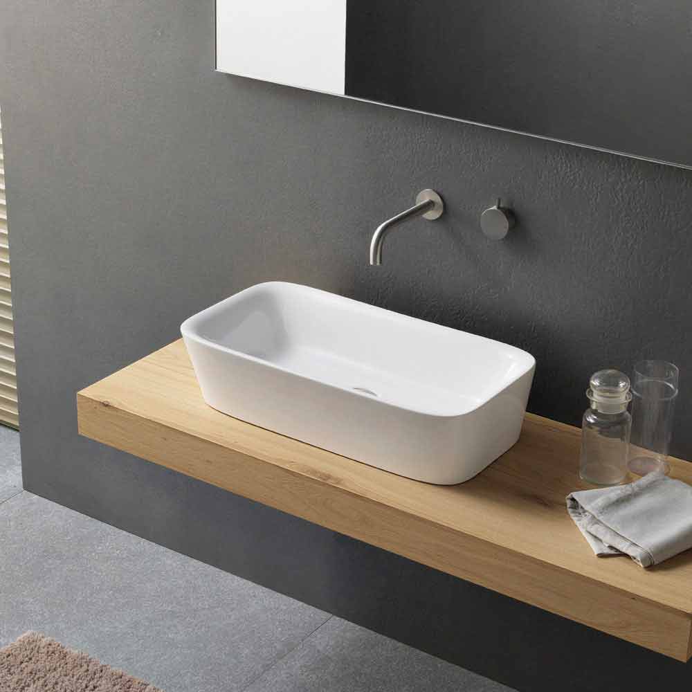 Lavoar de blat din ceramică albă, design dreptunghiular modern, cu margini înalte și rotunjite, fabricat în Italia.
