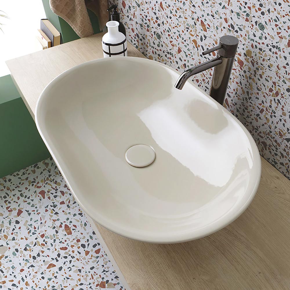 Lavoar de blat cu formă ovală din ceramică colorată cu finisaj lucios realizat printr-o producție artizanală 100% Made in Italy . Linii moi și armonioase caracterizați designul acestei chiuvete de baie rafinate cu o estetică simplă și versatilă . De fapt, forma sa se adaptează perfect oricărui context stilistic modern, aducând cu el o notă exclusivă capabilă să completeze amenajarea zonei băii într-un mod unic și avangardist. Pentru a îmbogăți estetica lavoarului sunt culorile minunate propuse care asigură un rezultat rafinat în ciuda unui stil sobru și elegant .