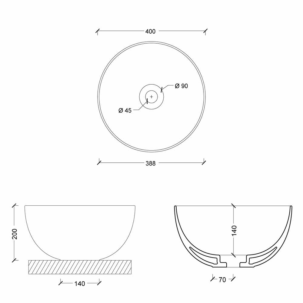 Lavoar de blat ceramic cu design modern Star Round 40 cm, fabricat in Italia