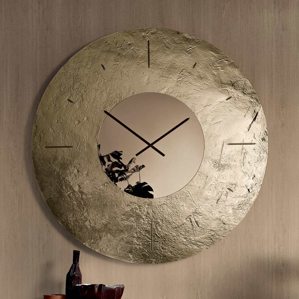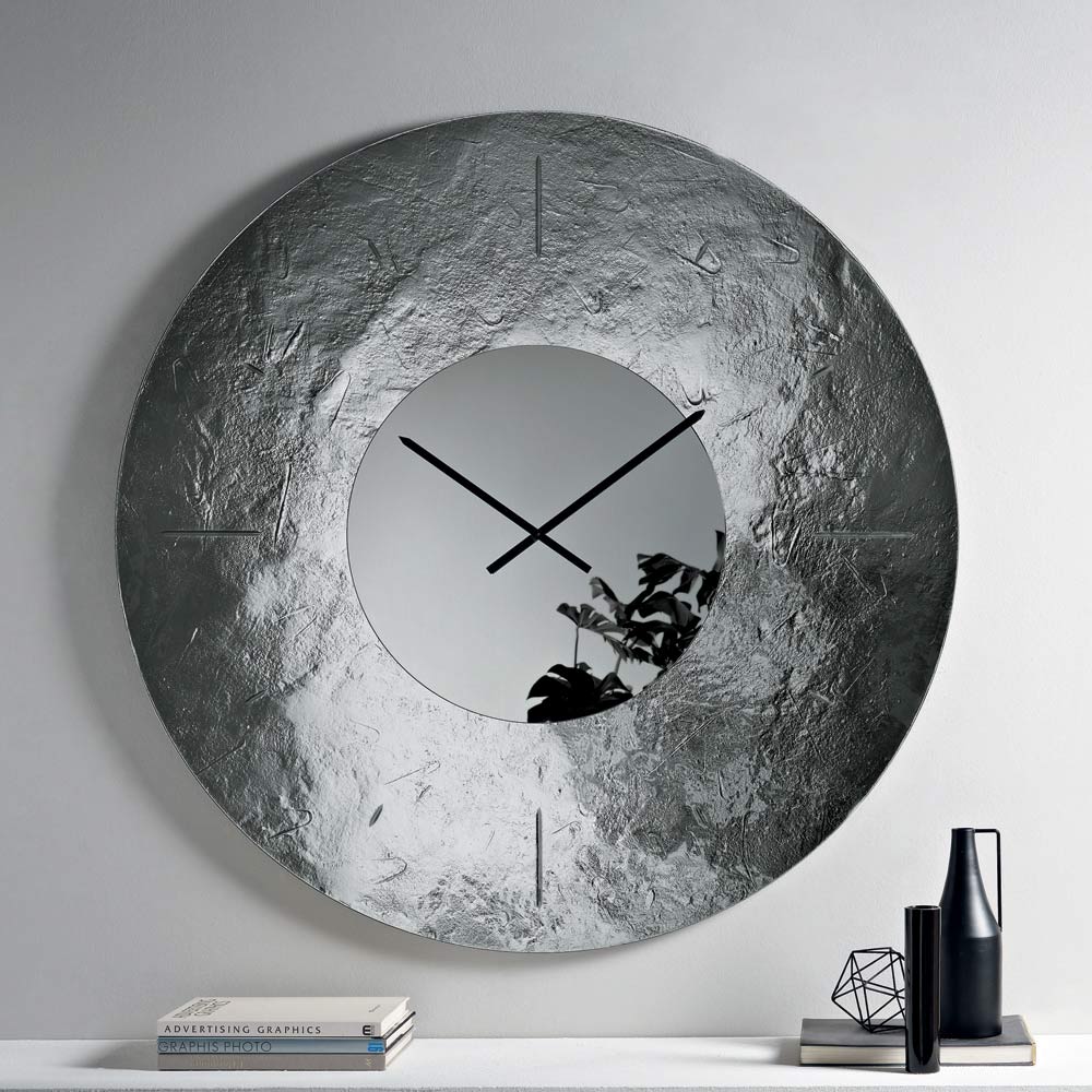 Ceas de perete elegant, de design, fabricat în Italia , ideal pentru a îmbunătăți spațiile precum livingul , holul de intrare sau zona de luat masa . Designul său contemporan combină estetica și funcționalitatea, transformând ceasul într-un adevărat element decorativ capabil să îmbogățească peretele cu stil.