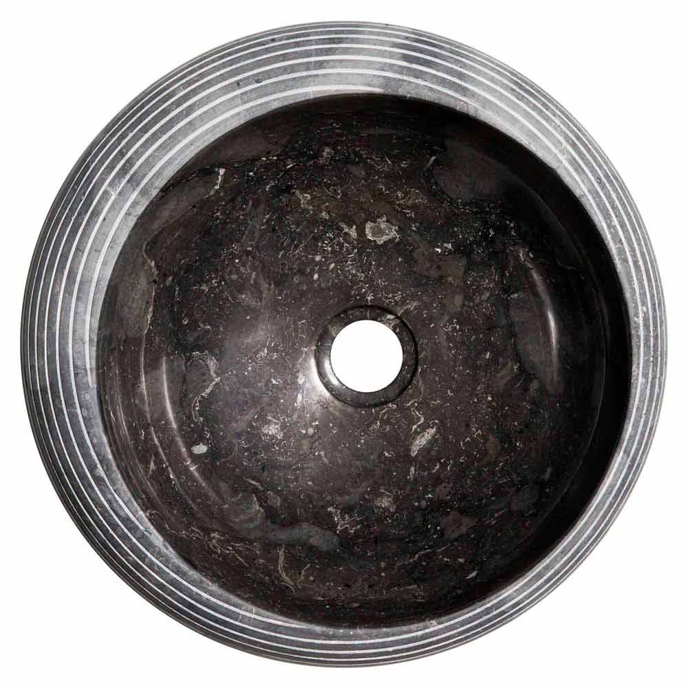 Bubbio este un lavoar circular pe blat fabricat manual din marmură gri.