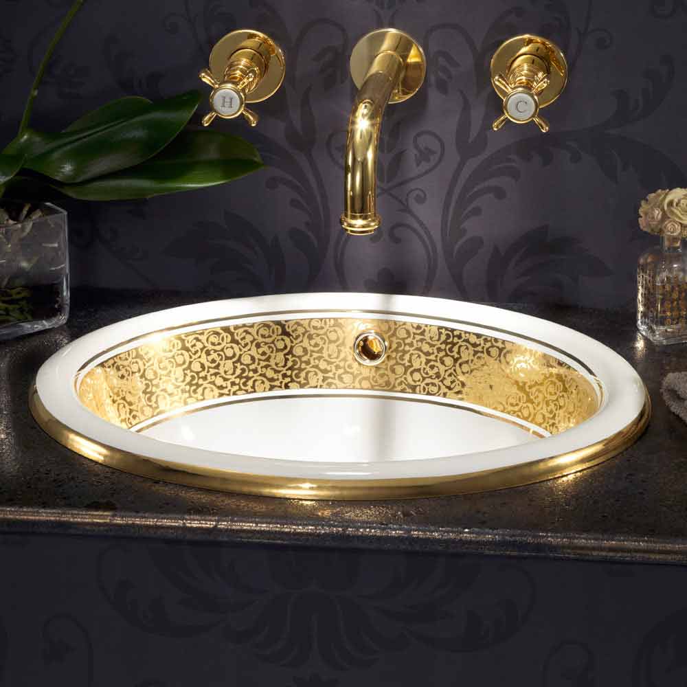 Circular decorat încorporat în chiuveta în lut foc și aur, Otis