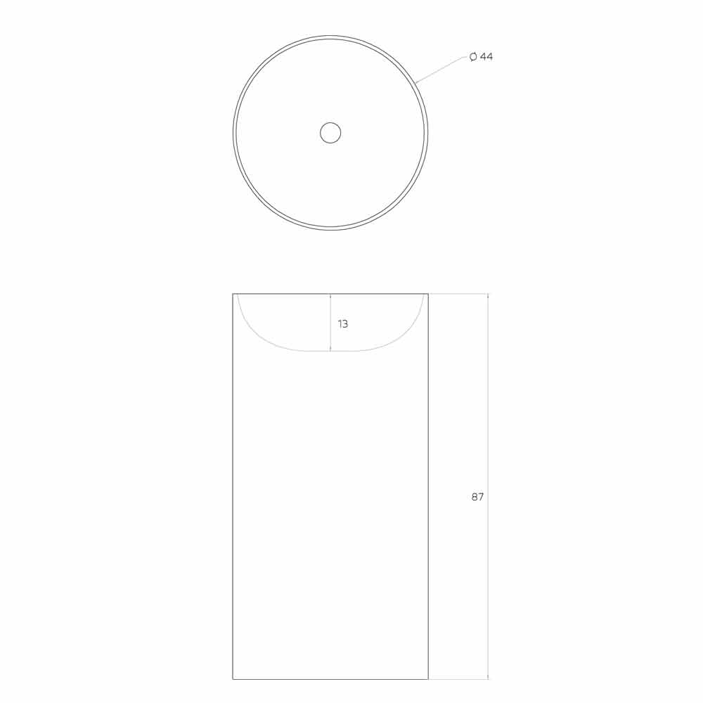 Rumo este o chiuvetă cilindrică contemporană și modernă în Luxolid, pregătită pentru montare în pardoseală; perfect pentru a vă valorifica baia.