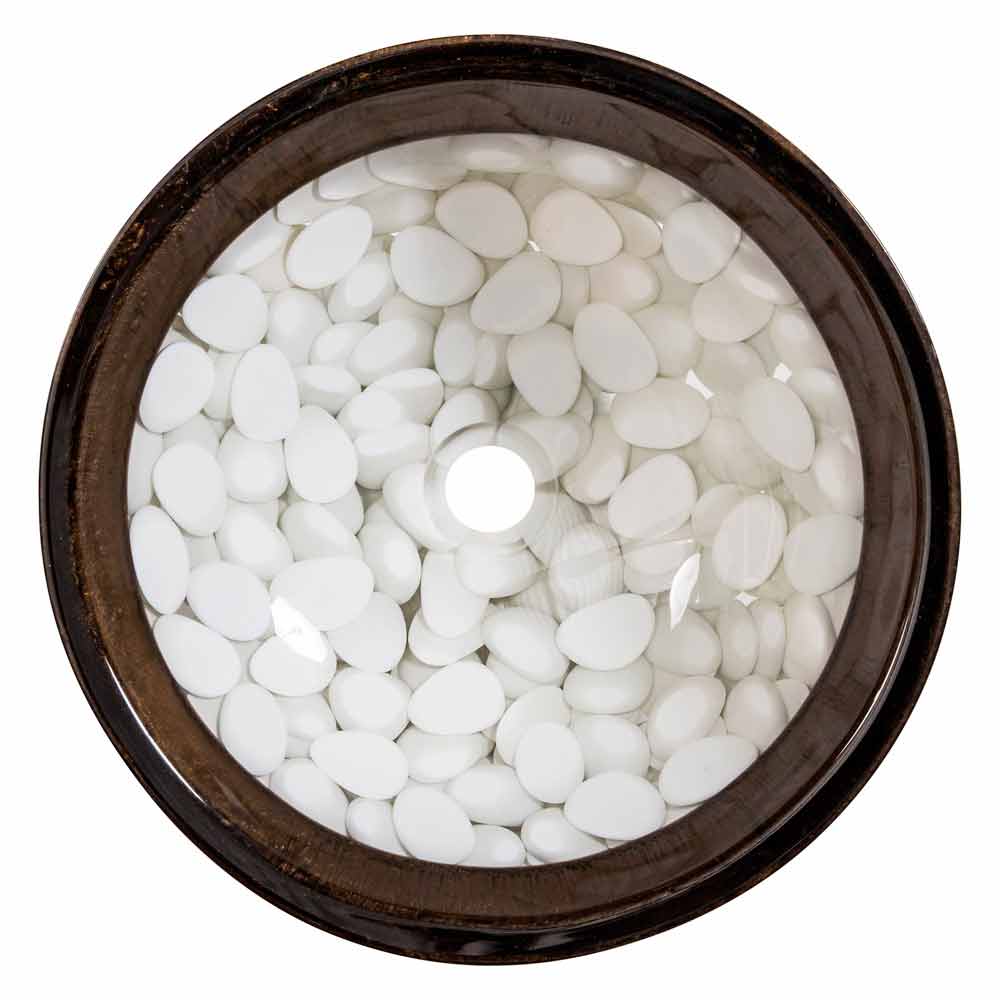 Buguggiate este o fabulosă chiuvetă rotundă de blat realizată manual cu o rășină artificială de înaltă calitate, în interiorul căreia sunt montate pietre.