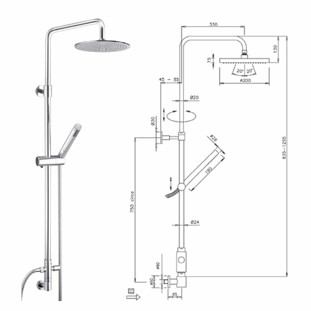 Coloana de dus din alama cromata cu cap de dus din ABS Made in Italy si dus de mana.