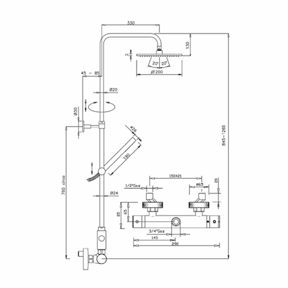 Coloana de dus din alama cromata, otel si ABS design modern Made in Italy.