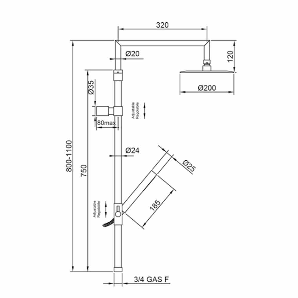 Coloana de dus din alama, otel si ABS cu suport glisant, produs de inalta calitate Made in Italy.