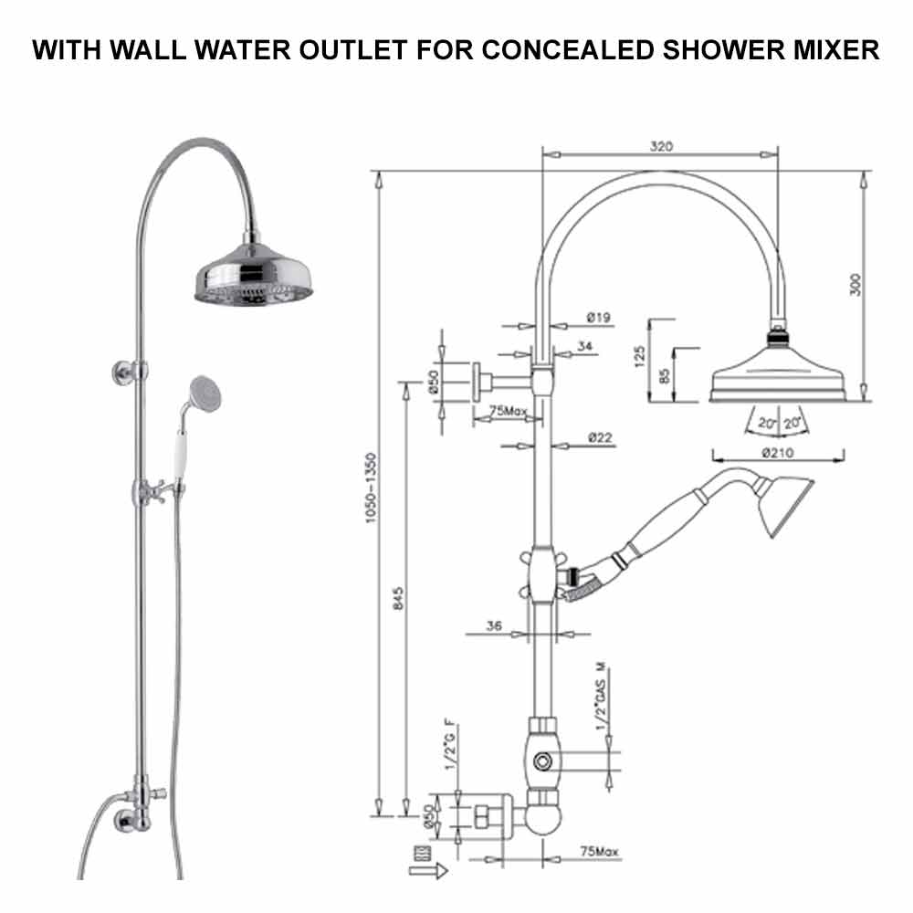 - cu racord de apă pe perete pentru duș încorporat.