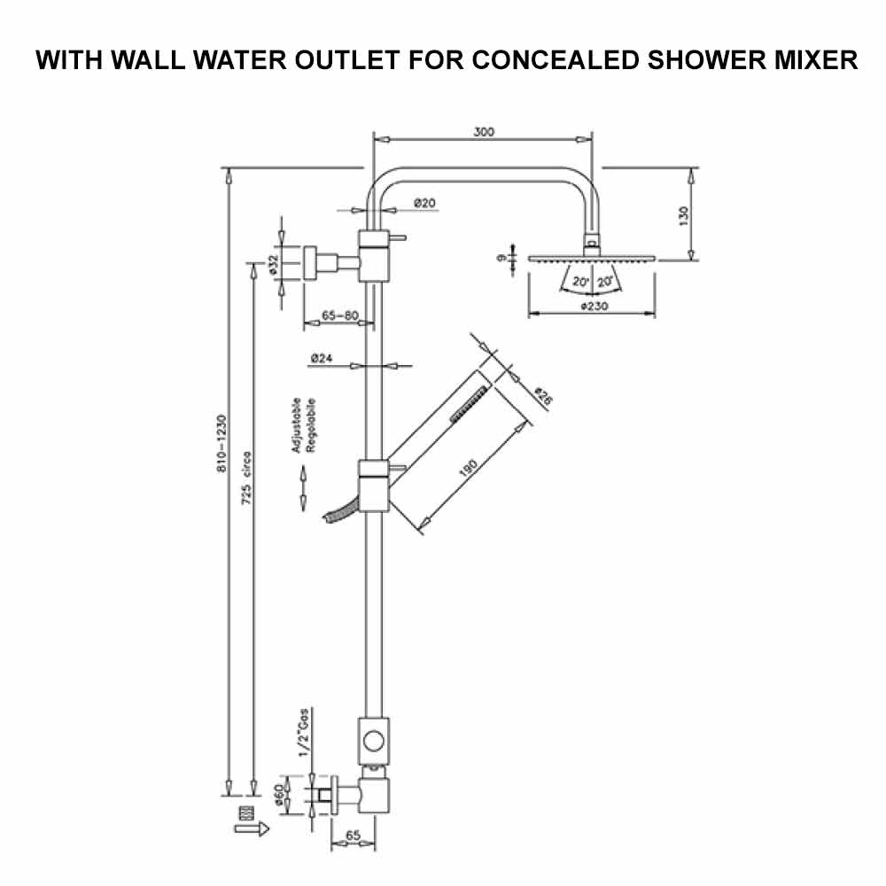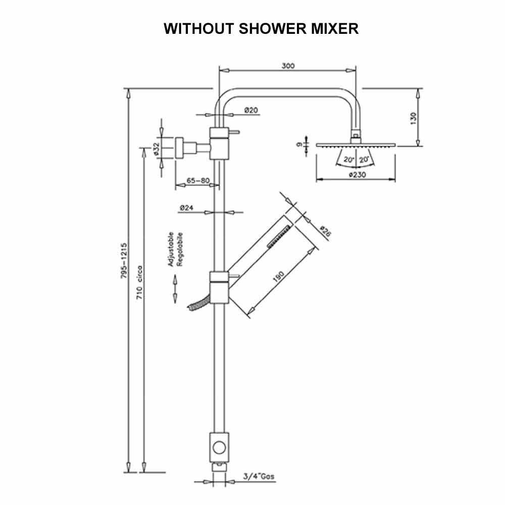 - cap de duș rotund Ø 200 mm.