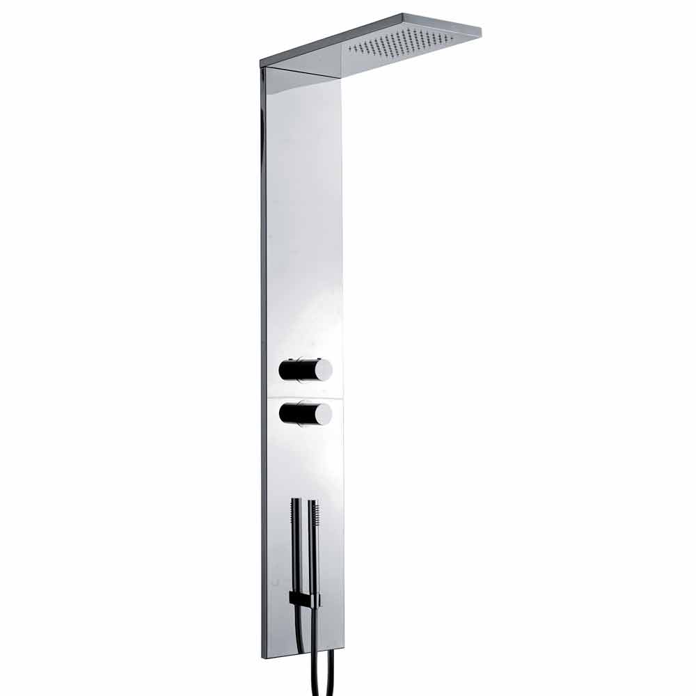 Coloana de duș termostatică modernă și elegantă realizată integral în Italia, din oțel inoxidabil cu finisaj cromat. Întâlnirea dintre funcționalitate și design dă viață unei piese de mobilier minunate, ideale pentru completarea și îmbogățirea oricărei băi cu caracteristici contemporane cu originalitate. Liniile sale geometrice cu caracteristici esențiale creează coloana de duș perfectă pentru cei care caută un gust sofisticat și extrem de inovator capabil să revoluționeze mobilierul aducând un plus de personalitate .