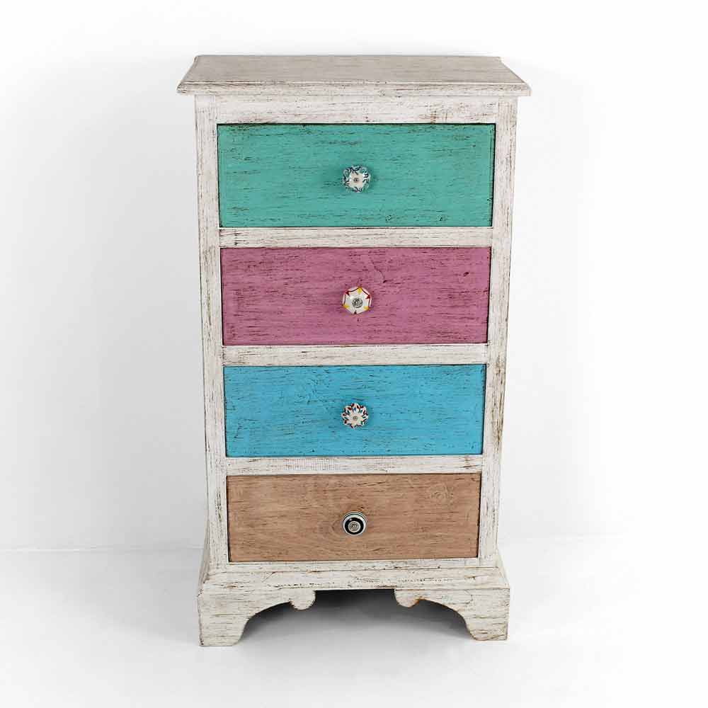Comodă din lemn masiv realizată manual, cu 4 sertare colorate, de înaltă calitate Made in Italy.