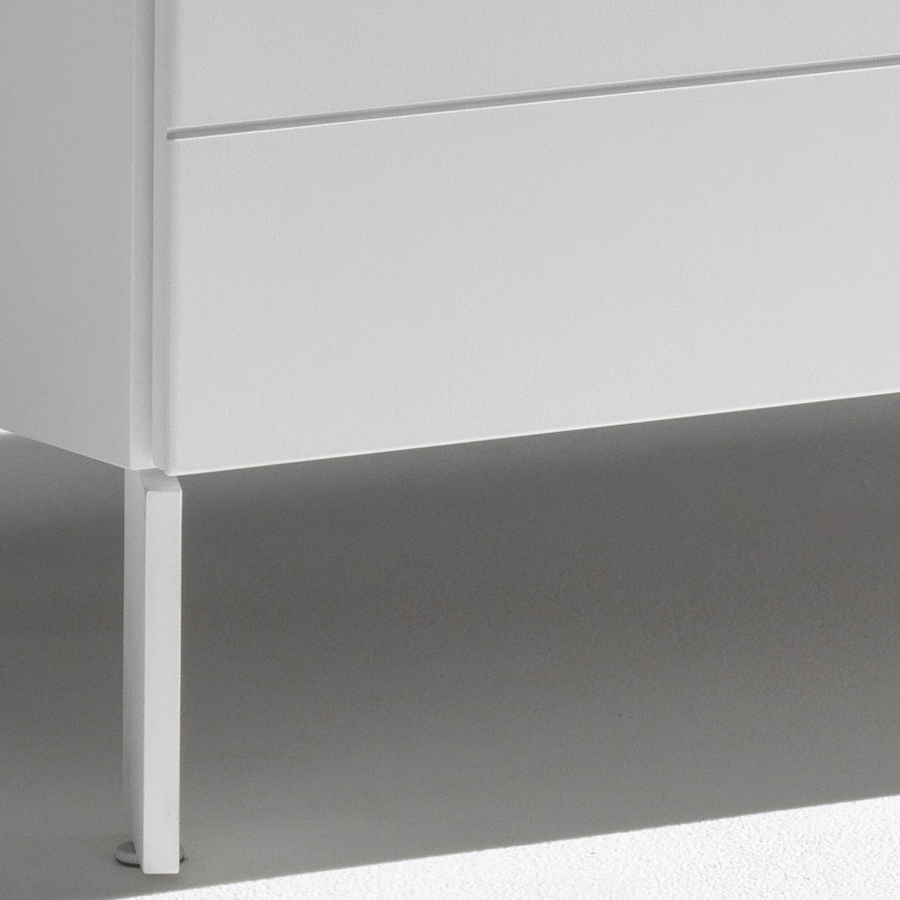 Structura este realizată din PAL vopsit , în timp ce fronturile sertarelor din MDF sunt finisate cu vopsele poliuretanice de înaltă calitate, pentru o suprafață rezistentă, uniformă și durabilă.