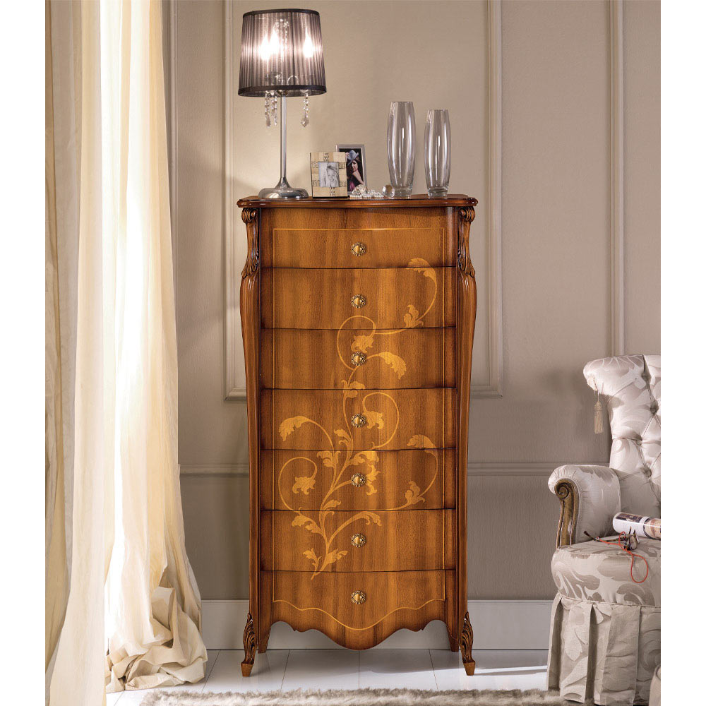 Comoda cu 7 sertare din lemn de nuc incrustat Made in Italy.