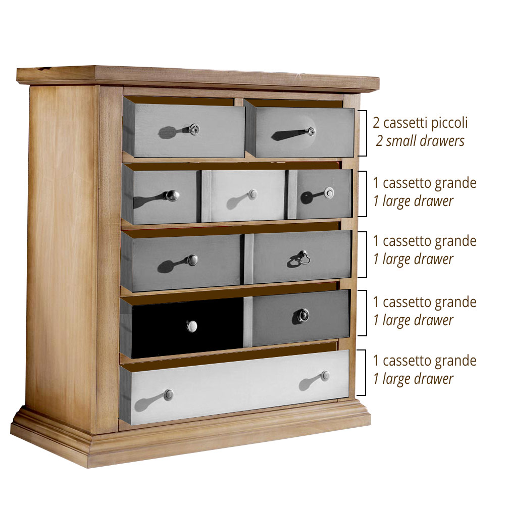 Designul sertarelor este pur estetic. Incepand de sus sunt 2 sertare mici urmate de 4 mari. Contactați-ne pentru o ofertă sau pentru informații folosind formularul „