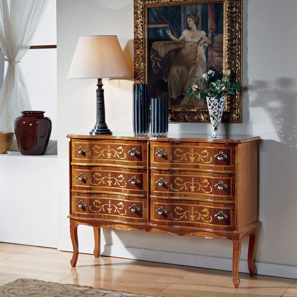 Comoda in stil clasic din lemn cu 6 sertare Made in Italy.