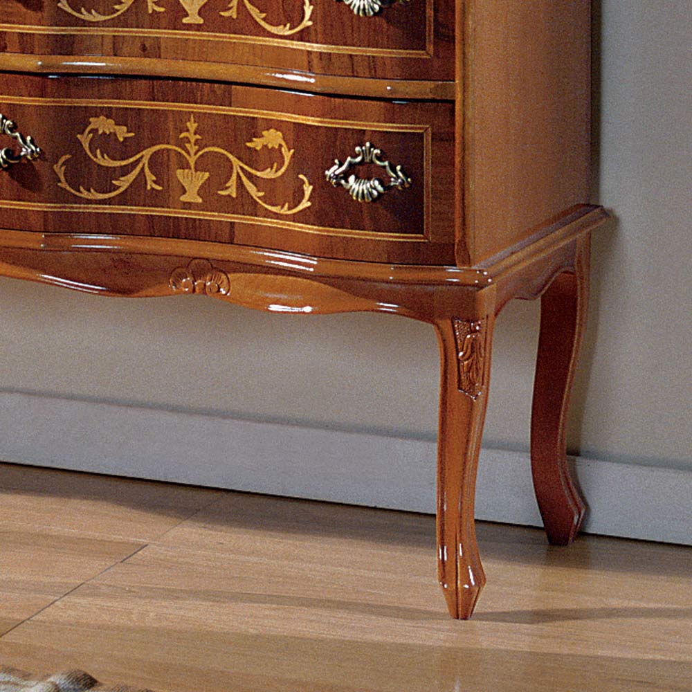 Comodă în stil clasic din lemn prețios de nuc lustruit cu incrustații aurii . Această piesă de mobilier practică și rafinată cu 6 sertare este complet realizată în Italia și realizată manual de meșteri pricepuți , finisată cu pricepere și gust pentru eleganță. Producția este realizată folosind materiale fine , iar lucrul este realizat manual cu cea mai mare grijă și profesionalism care distinge produsele Made in Italy .