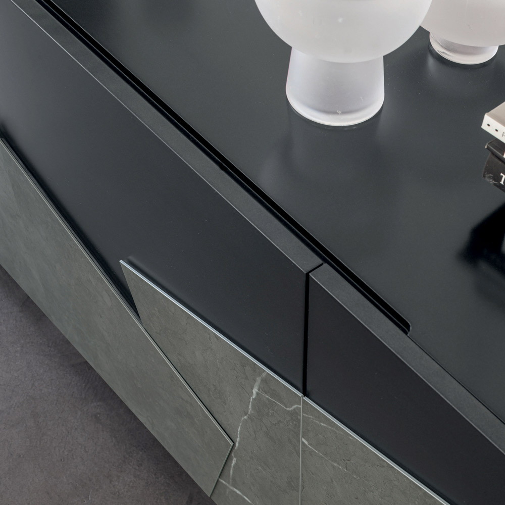 Bufetă din MDF cu 3 uși cu inserții din ceramică mată fabricată în Italia.