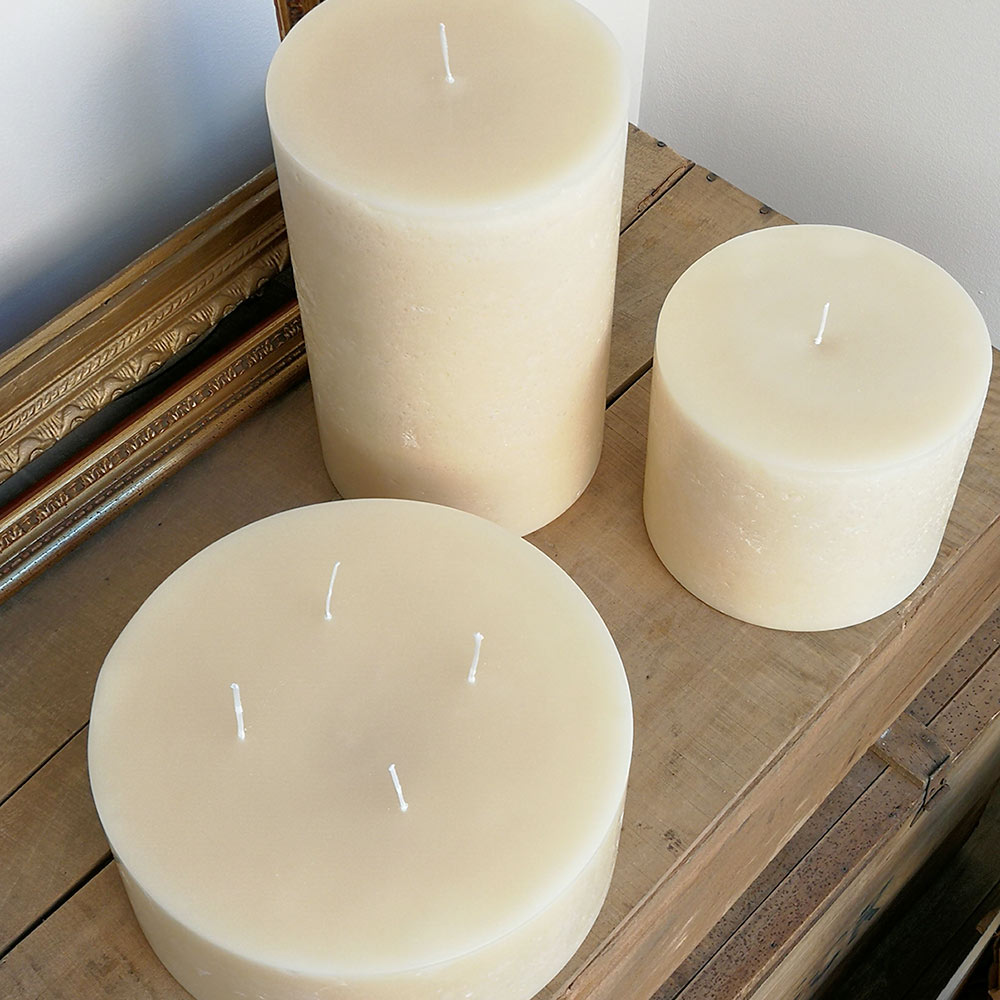 Compoziție modernă care include trei lumânări de ceară de diferite dimensiuni, proiectate și