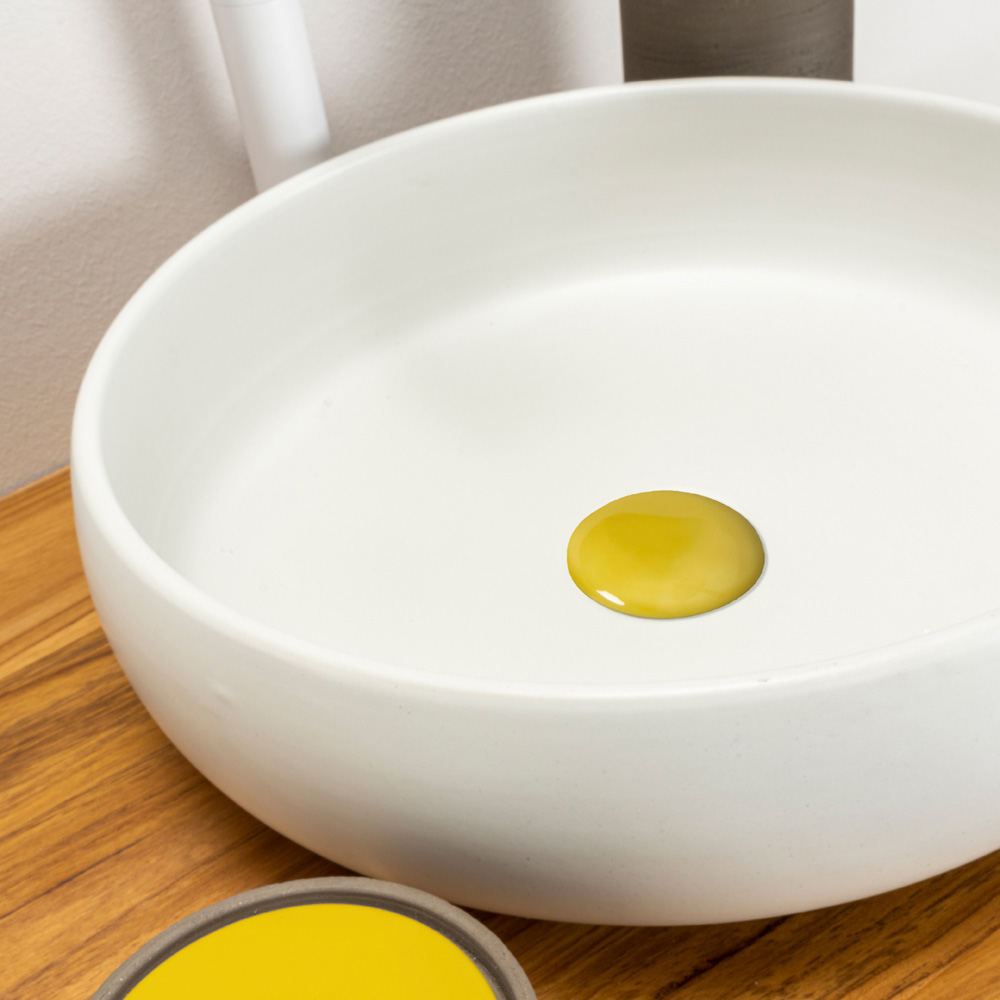 argila refractara si pamanturi inchise in finisaj alb cu cuvertura galbena, este un