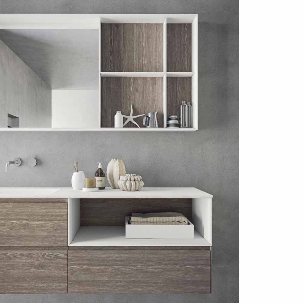 În cele din urmă, compoziția este oferită într-o serie de noi finisaje care includ laminate HPL Unicolor cu decorațiuni care simulează stejarul în patru nuanțe diferite și piatra în trei nuanțe naturale. Pentru a le însoți, o gamă largă de lacuri care vizează crearea unui program complet capabil să satisfacă o gamă largă de utilizatori și tipologii spațiale.
