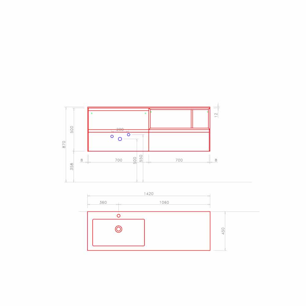 Această claritate formală este dată de ușa canelată cu profil înclinat și de chiuveta încorporată.
