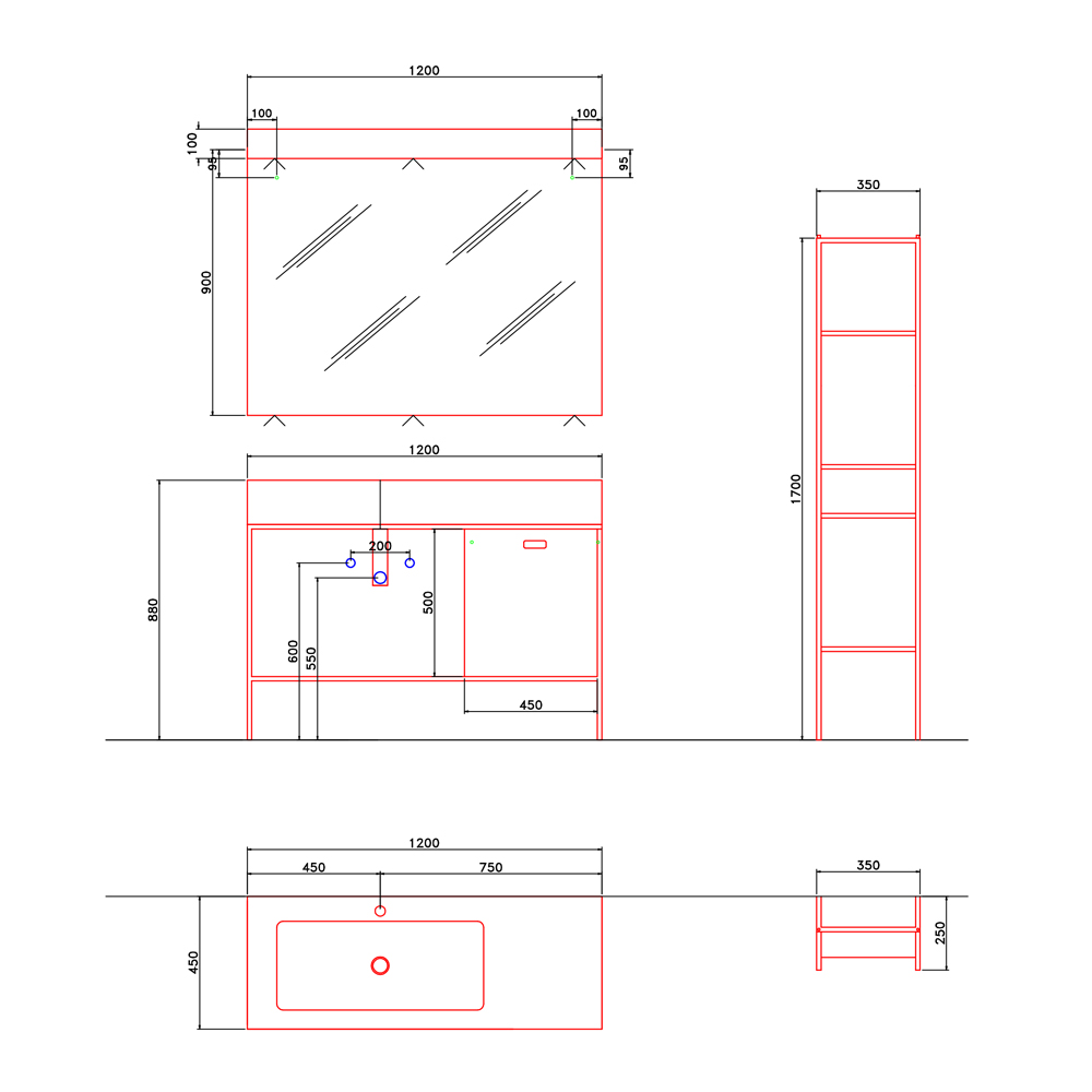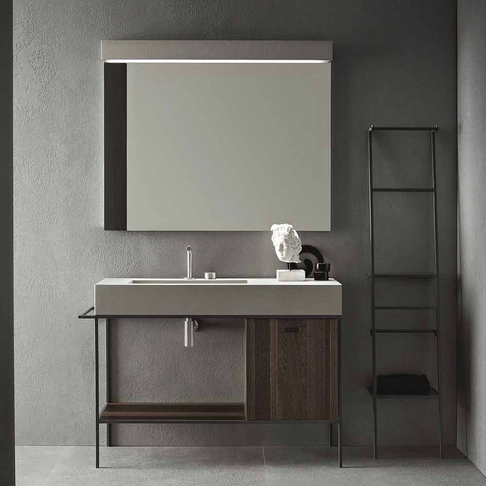 Compoziția mobilierului de baie, design artizanal contemporan, fabricat în Italia.