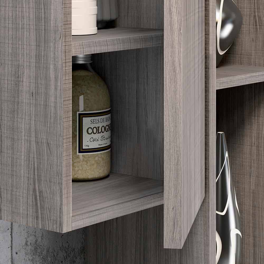 - Un dulap deschis în EcoLegno tăiat gri; L18xH96xP18 cm.