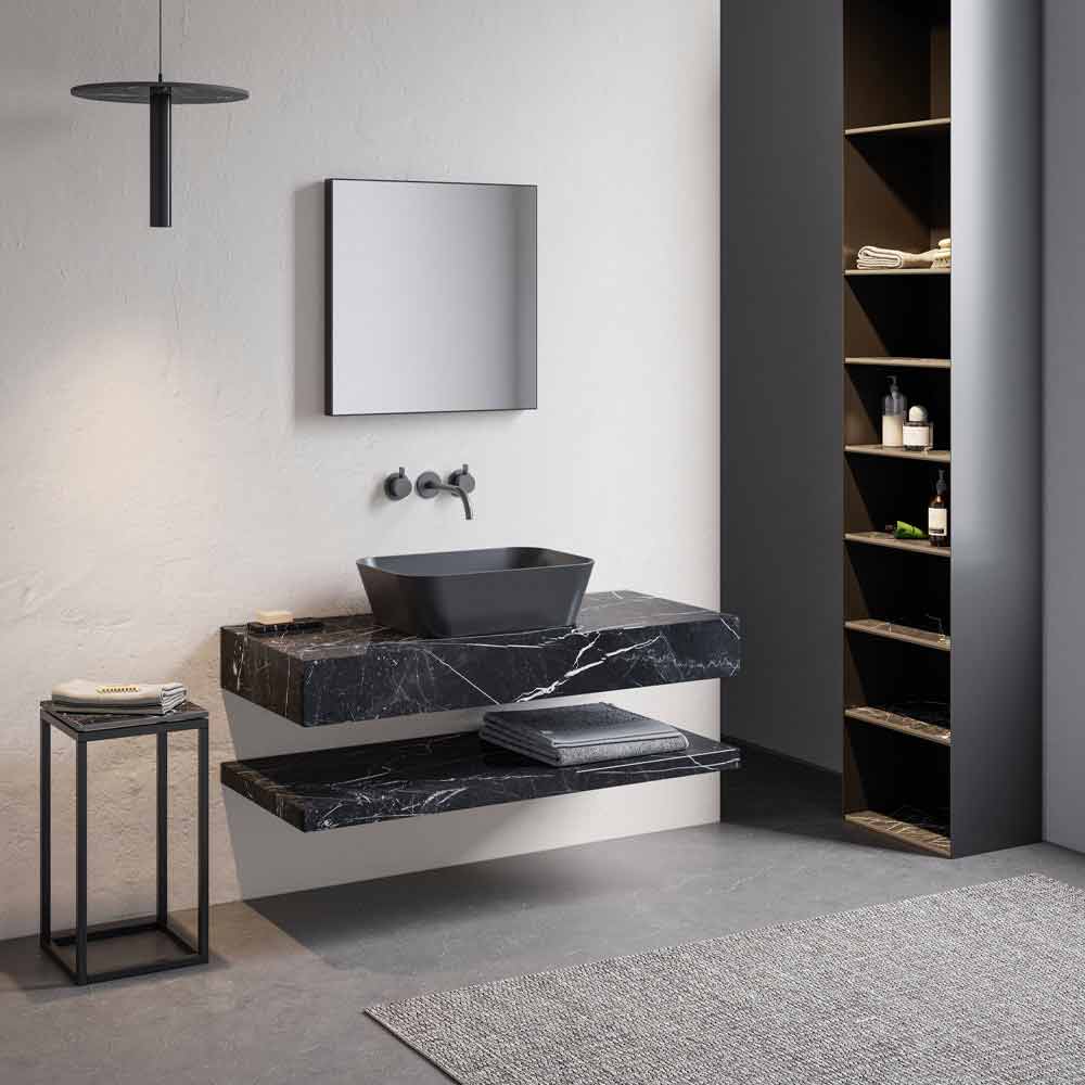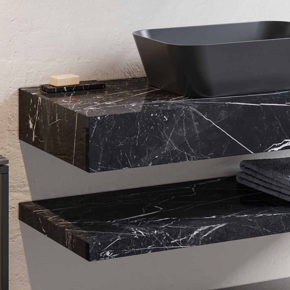 Compoziție suspendată de 3 mobilier de baie din gresie porțelanată și chiuvetă din sticlă, de înaltă calitate, fabricat în Italia.