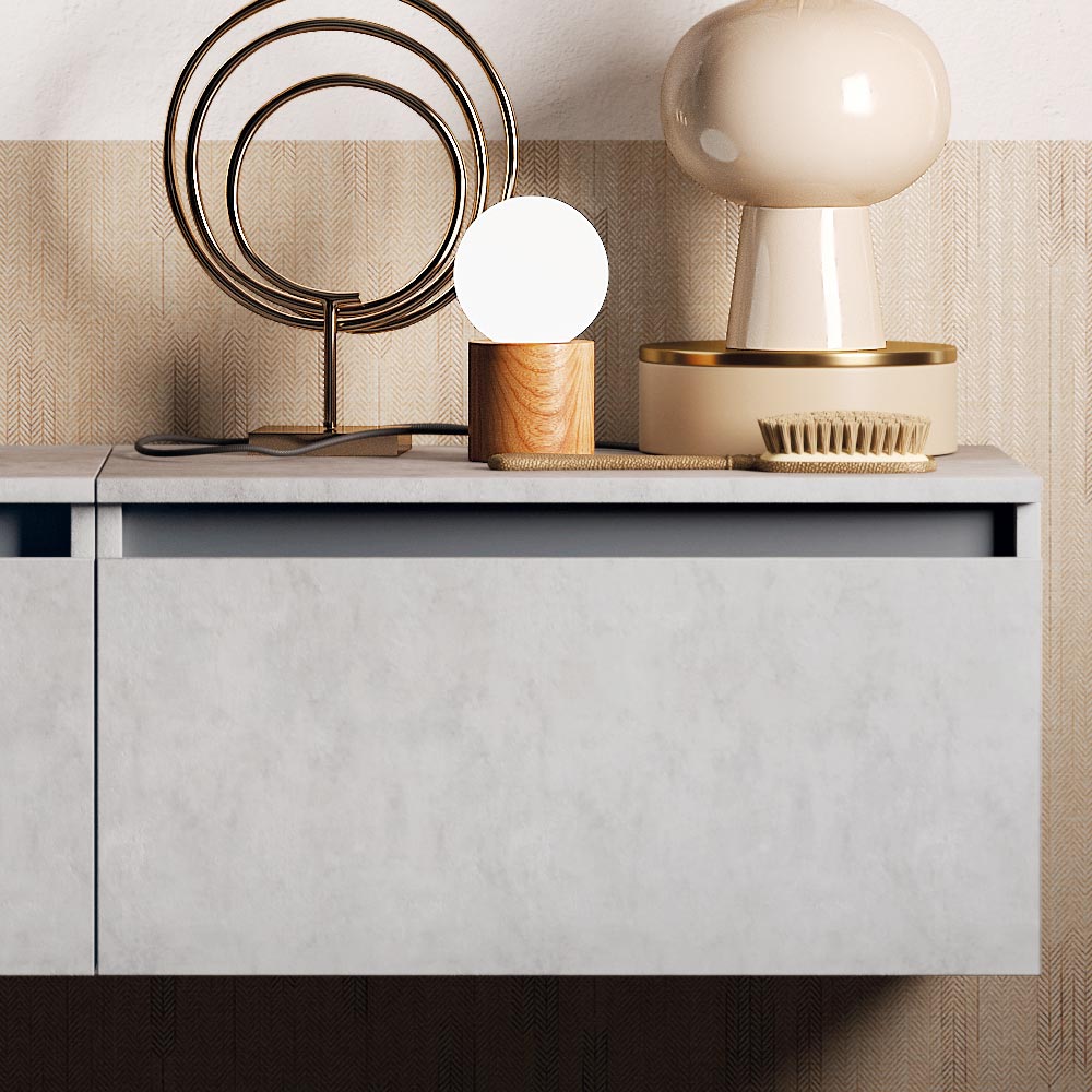 Compozitie care combina formele moi ale oglinzii cu soliditatea mobilierului, creand un produs suspendat intre un stil modern si clasic. Alegerea materialelor excelent lucrate garantează calitatea și funcționalitatea chiar și cu trecerea timpului.