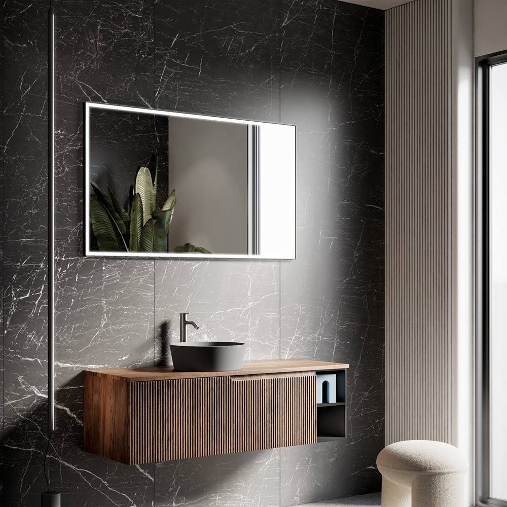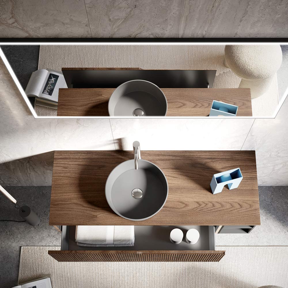 Această compoziție de baie a fost creată pentru a îmbina stilul modern cu funcționalitatea astfel încât să poată răspunde diferitelor nevoi de design și să poată da o notă unică spațiului. Finisajele simple si liniare fac ca acest mobilier sa fie elegant si sic in acelasi timp si se imbina cu marea calitate si rezistenta a materialelor folosite la realizarea lui.