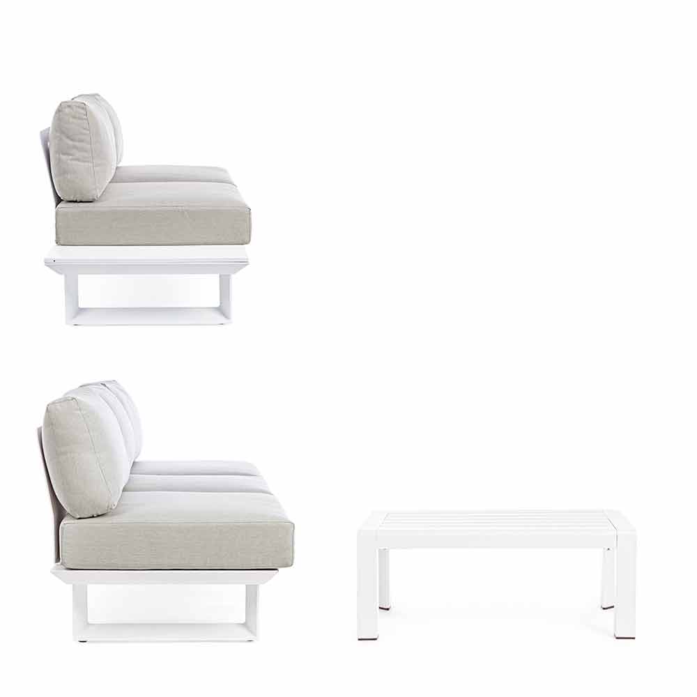 Compoziție living exterior în aluminiu cu perne detașabile, articol de calitate.