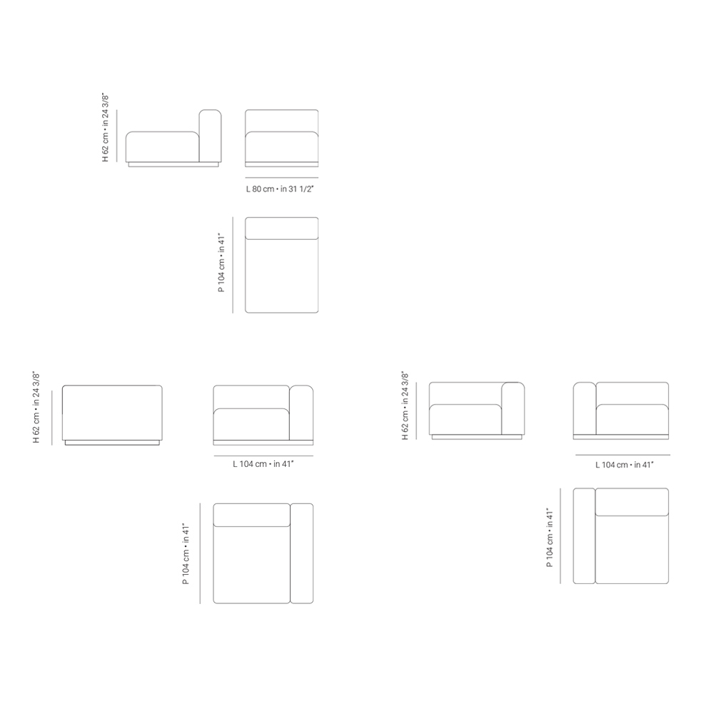 - element colț stânga: L 104 x D 104 x H 62 cm
