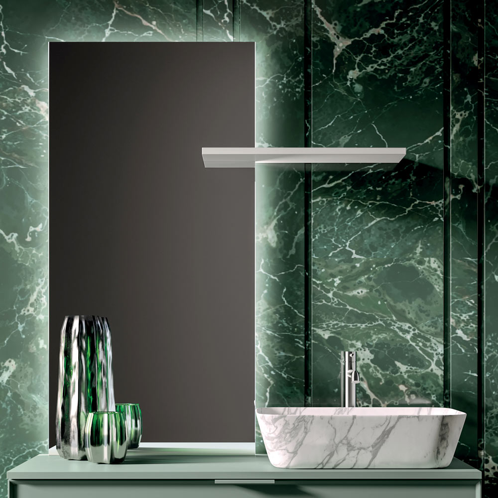 Oglinda de baie cu iluminare LED pe trei laturi , dotată cu control tactil , garantează o lumină difuză și funcțională, ideală pentru confortul zilnic și pentru crearea unei atmosfere elegante și primitoare.