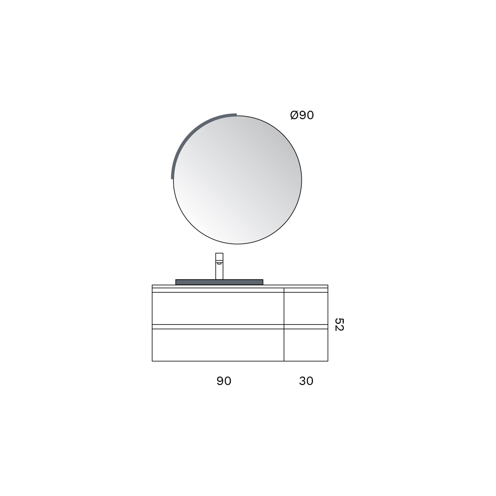 Oglinda rotundă , cu proporții echilibrate, completează ansamblul cu o notă de lejeritate vizuală, amplificând spațiul și dialogând armonios cu liniile riguroase ale mobilierului.