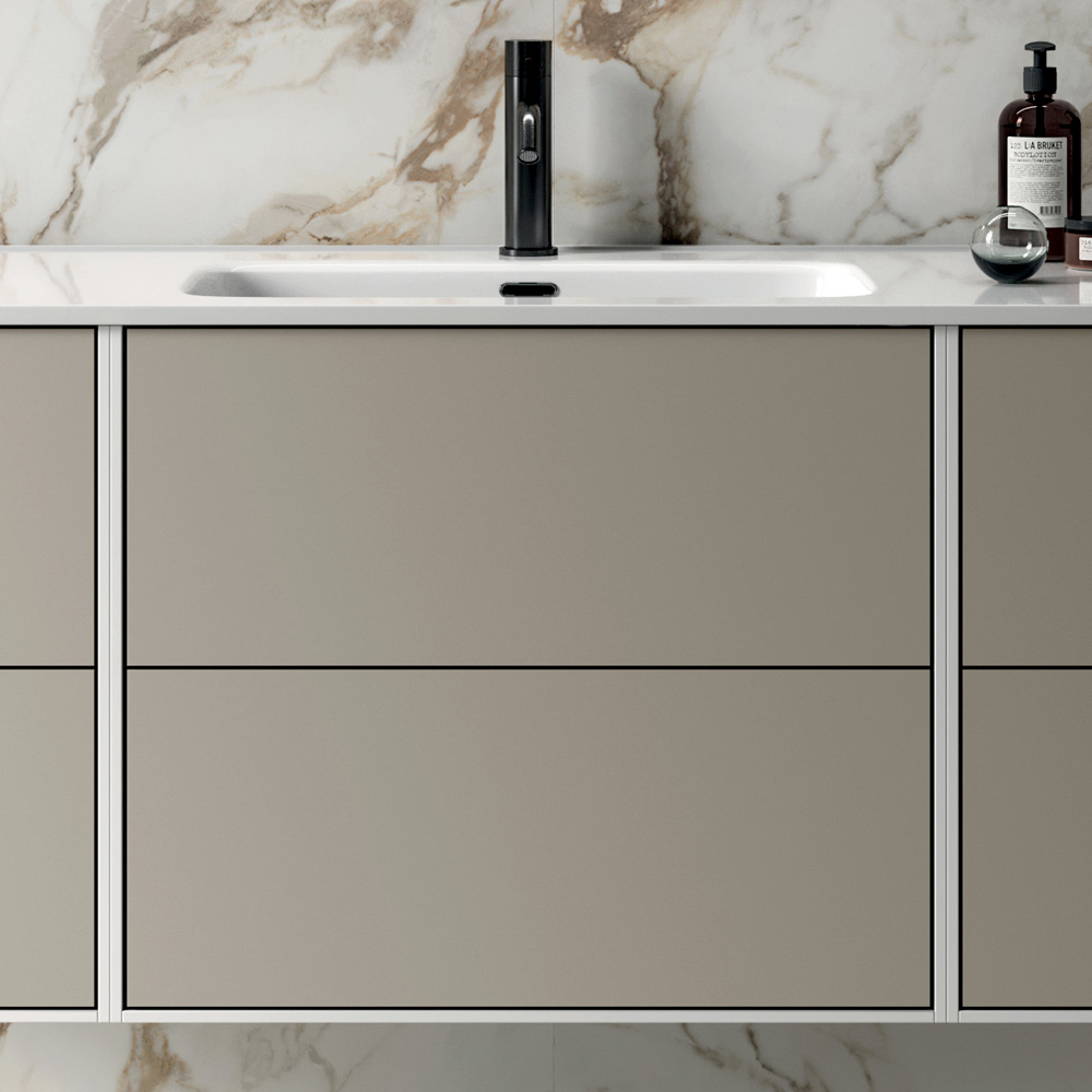 Liniile esențiale și volumele curate îmbunătățesc spațiul, în timp ce configurația suspendată conferă luminozitate vizuală și un efect arhitectural rafinat. Sertarele oferă caracter practic și ordine, menținând o estetică minimalistă și armonioasă.