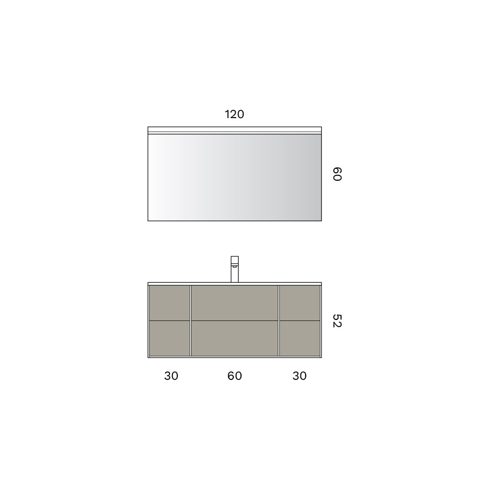 O compoziție contemporană pentru baie care echilibrează perfect eleganța și funcționalitatea. Finisajul mat gri porumbel al dulapurilor de perete creează o atmosferă sofisticată și relaxantă, ideală pentru spații moderne și rafinate.