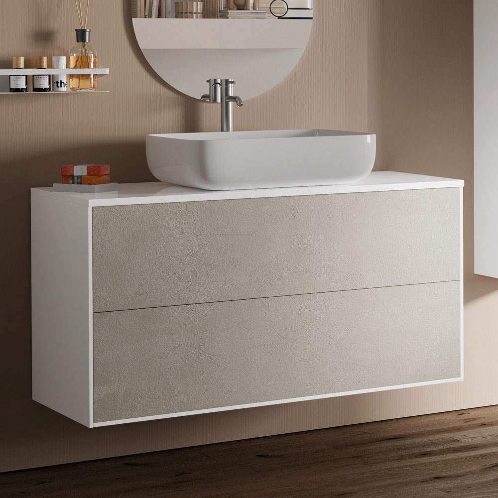 Compozitie baie cu baza, oglinda si chiuveta ceramica Made in Italy