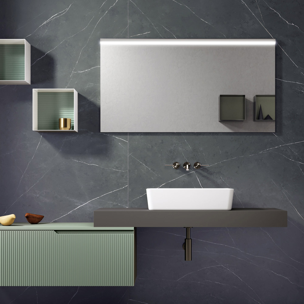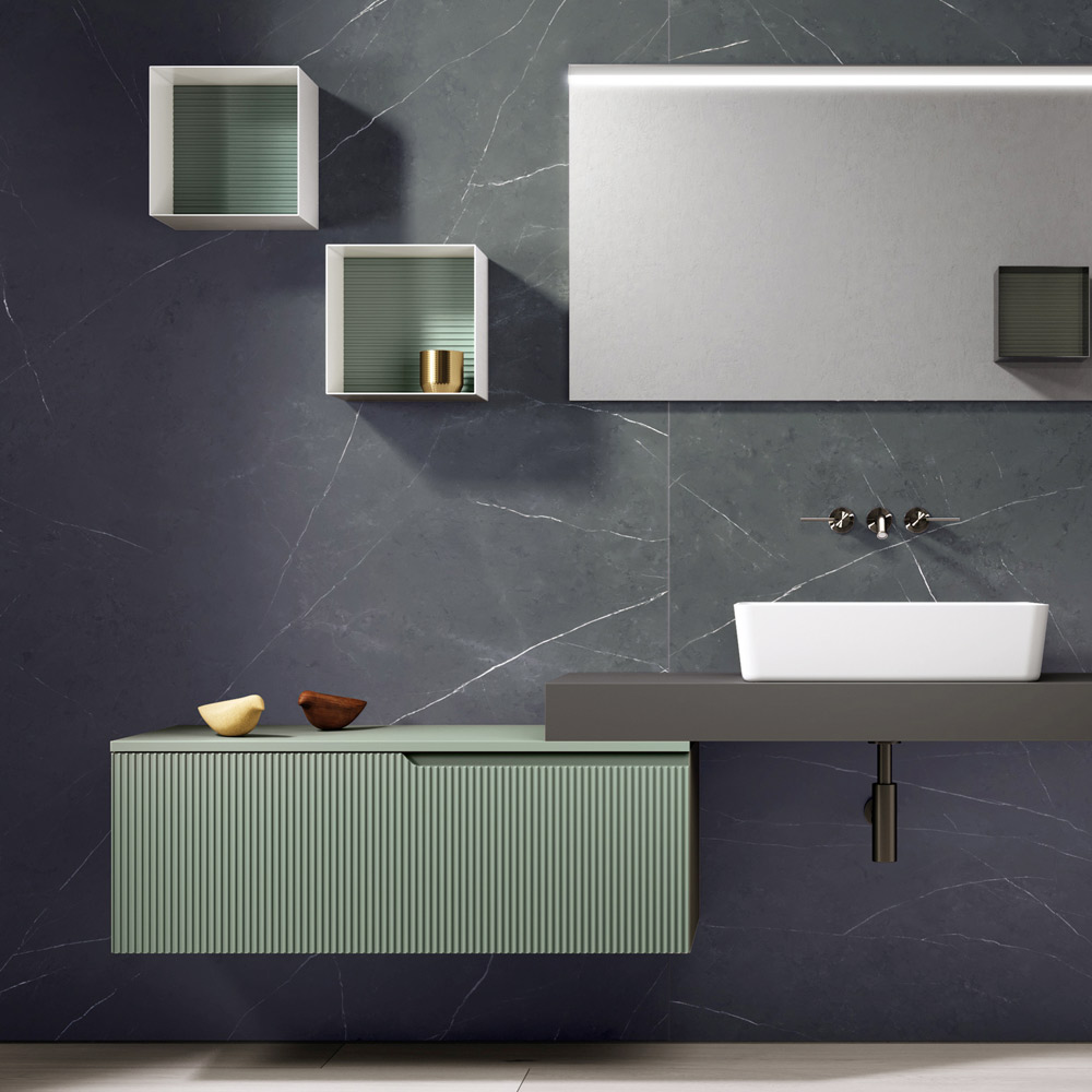 Compoziție de baie din MDF verde salvie cu nervuri Made in Italy