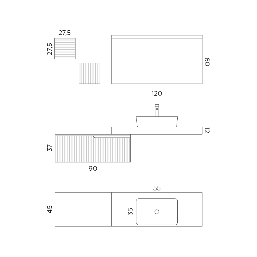 - Unitate de perete: Lungime 27,5 x Adancime 18 x Inaltime 27,5 cm