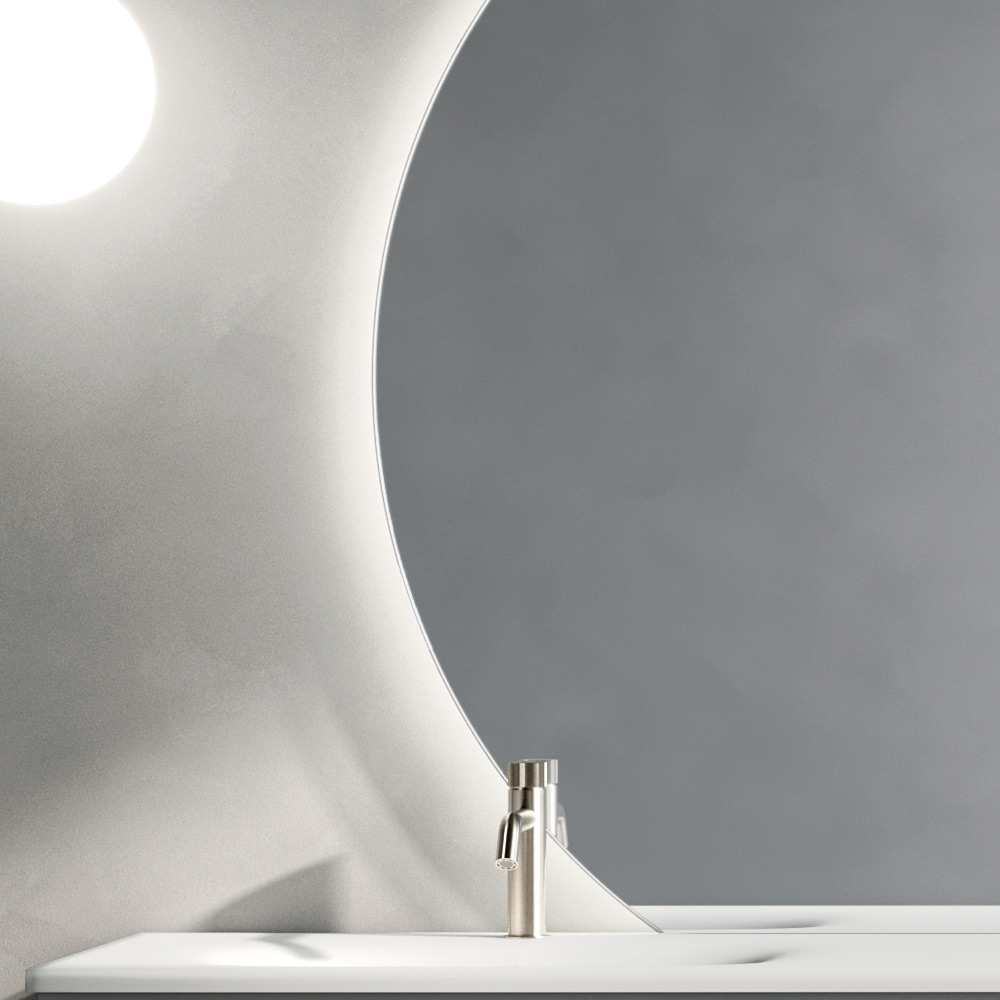 Completează aspectul oglinda circulară cu LED , care difuzează o lumină blândă și uniformă, sporind funcționalitatea zonei chiuvetei și contribuind la crearea unei atmosfere primitoare și relaxante.