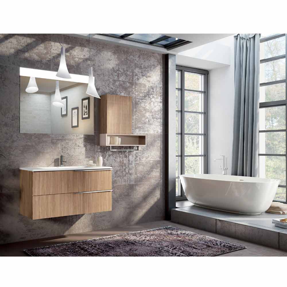 Cesena este o compoziție de mobilier de baie suspendat realizat în eccoLegno în finisaj satinat lacuit; ceea ce îl face perfect pentru decorarea băii cu creativitate și stil.