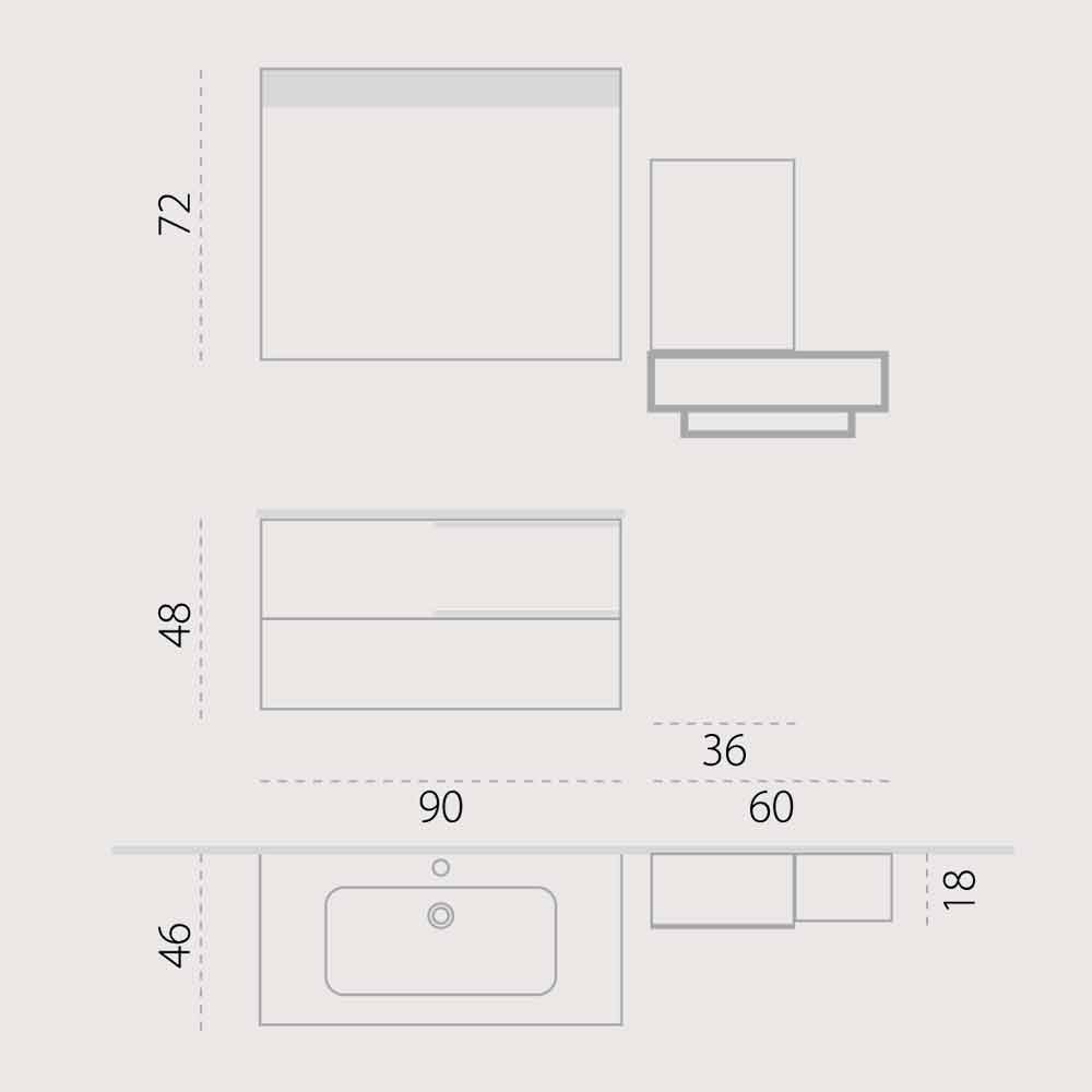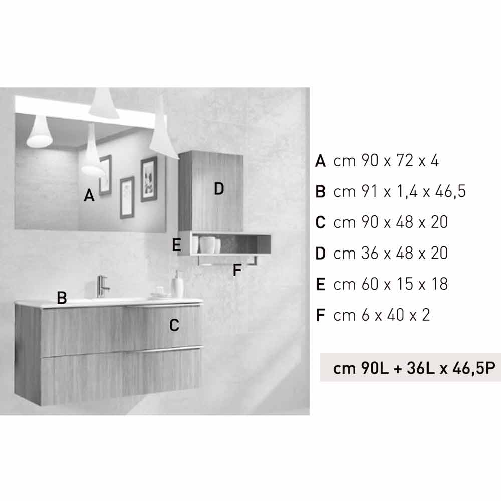 - o bază de lavoare din lemn de stejar ecoLegno cu mâner cu finisaj cromat; L90xH48xP46 cm;