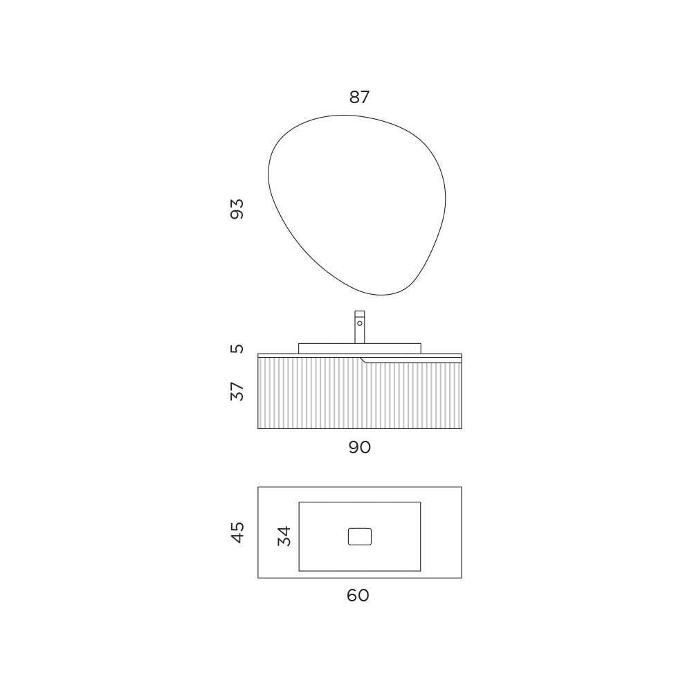 - Lavoar: Lungime 60 x Adancime 34 x Inaltime 15,7 cm