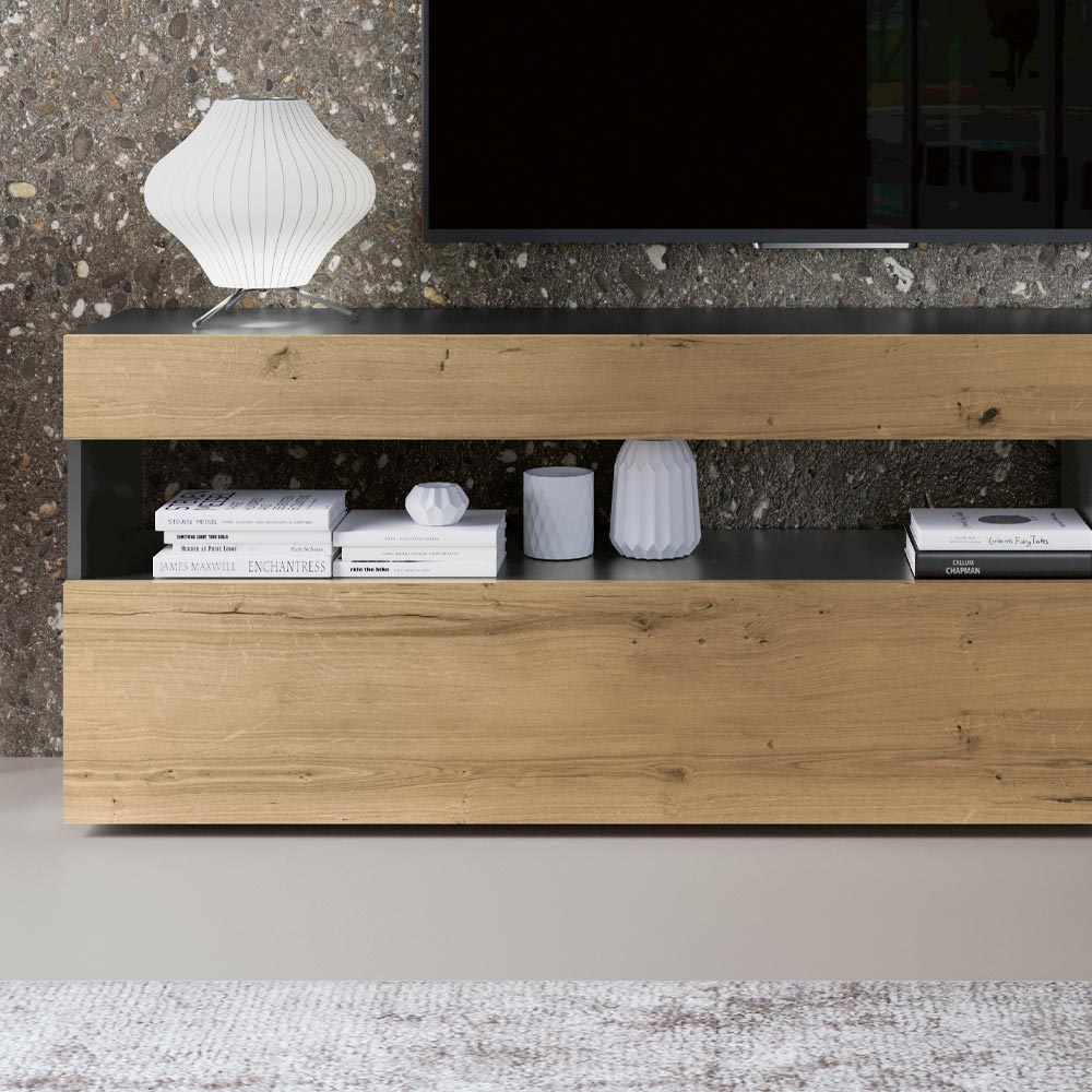 - unitate de perete cu clapă din stejar, finisaj NORDIC KNOTTED STEJAR + CHARCOAL, carcasă MDF, uși din lemn de stejar cu noduri