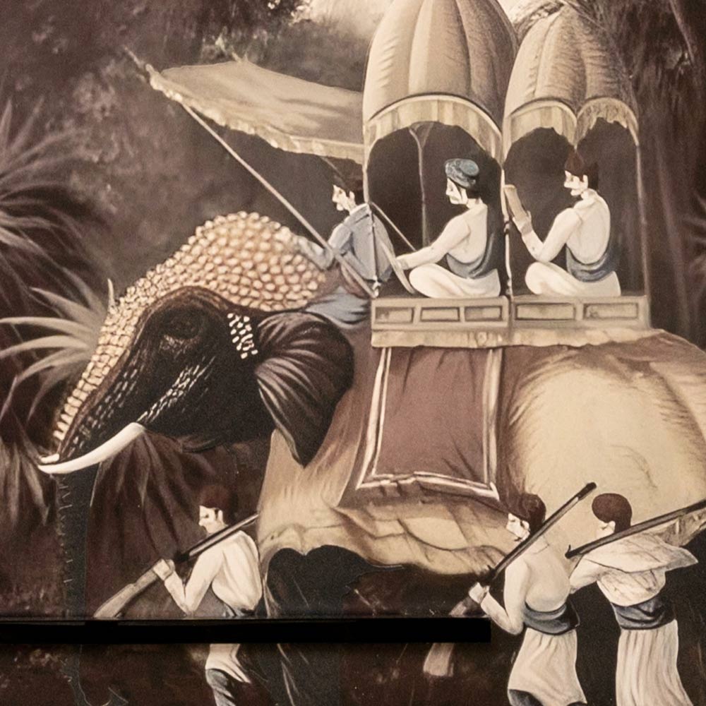 Cu acest tablou dorim sa conferim incaperii o atmosfera exotica si tropicala datorita imprimeului unui elefant cu baldachin si a padurii din jur care fac compozitia perfecta pentru a completa decorul oricarei incaperi. A fost realizat în întregime în Italia, cu selecția celor mai bune materiale și cu grijă și atenție în fiecare proces de producție.